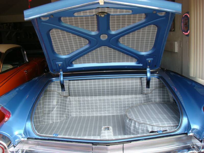 The Trunk has been completely redone in vinyl material... even better than the factory set up...and has a hidden removable divider... in case you want to beef up the stereo and hide it.... or put air ride and want to hide the compressor. It is one of the nicest trunks you have ever seen.